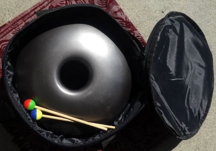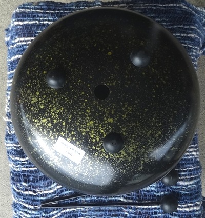 インドネシアの楽器工房で作られたハピドラムです。 オリジナルのハピドラムよりも少し小ぶりですが、よりクリアな音響が特徴です。 基本的には付属のマレットで叩いて演奏します。 音階は、アケボノと呼ばれるスケールで、中心の音がG、周りの低いほうからC、D、D#、G、G#、C、D、D#と並んでいます。 どこか郷愁を誘うような、やさしい音色を奏でます。 専用のキャリーバッグとマレットが付属します。 |