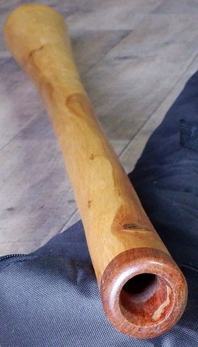 | 商品説明 | インドネシアの西ティモールは、オーストラリア北部と地理的にも近く、植生も似ていることから、ディジュリドゥに向く良質のユーカリが自生しています。 そのティモールユーカリの中でも特にディジュリドゥに向く上質の木で作られたのが、こちらの商品です。 吹き口に小さな穴のマウスピースが装着されていることが特徴です。 それにより、少ない息で大きな共鳴音を作れるばかりか、早吹きやトゥーツ演奏が容易に実現できます。 キーも手頃でバックプレッシャーも強く、慣れると多彩な表現が可能です。 オーストラリア製ディジュ同様のクオリティーながらこの価格ですので、たいへんお値打ちな一品です。 ※中に分厚くクッション素材の入った特製ディジュ・バッグを付けてお届けします。 |