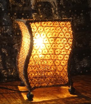バリ島☆デザインランプ☆波形22cm~ライトブラウン~〈テーブルライト スタンドライト〉