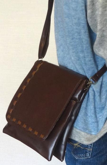 個性的なデザインの革バッグ。
