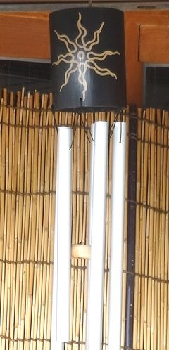 | 商品説明 | 太陽のデザインが描かれた竹筒に5本の太い中空アルミ棒がぶら下がっているウィンドチャイム(風鈴)です。