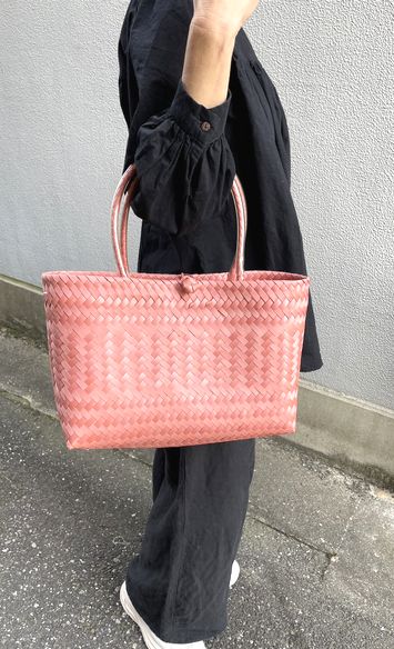 | 商品説明 | PP(ポリプロピレン)テープを編んで作られたベトナム生まれのプラカゴバッグ。 こちらは斜め編みを基本とした単色デザインの商品です。 パステルカラーの色合いが明るくキュートな印象です。 軽くて丈夫なうえ水にも強く、買い物やレジャー等の普段使いに活躍してくれます。 ※持ち手や上閉じパーツの編み込み箇所が多少雑な仕上がりになっています。予めご了承ください。 |