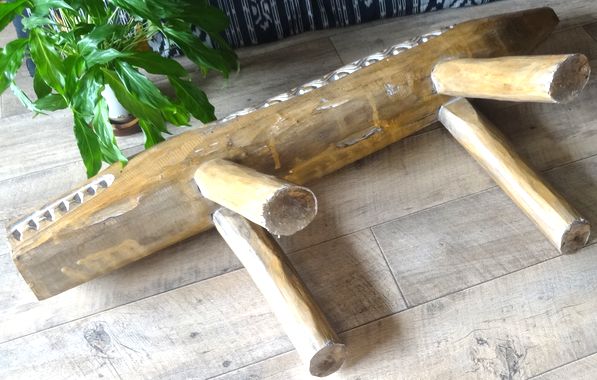 | 商品説明 | インドネシア-西ティモールの伝統的なスタイルの木製ベンチです。 ワワニをかたどった素朴なフレームが、置物としても面白いです。 硬くて重い木材を加工してありますので、大変丈夫です。 なお、脚の部分は、取り外せるようになっています。また、作りは多少荒削りで、小さなひび等もありますことを予めご了承ください。 |