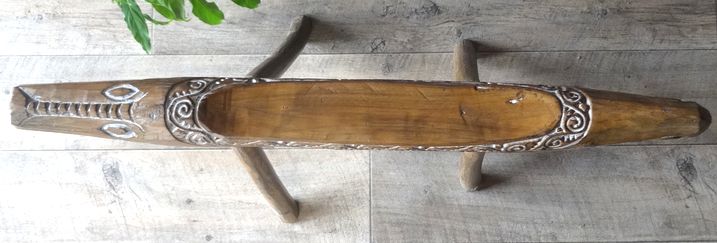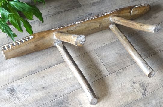 ワワニをかたどった素朴なフレームが、置物としても面白いです。 硬くて重い木材を加工してありますので、大変丈夫です。 なお、脚の部分は、取り外せるようになっています。また、作りは多少荒削りで、小さなひび等もありますことを予めご了承ください。 |