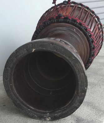 | 材 質 | 胴体:ティモール産硬質材、 ヘッド:ヤギ皮(厚め)、 鉄リング(上×2、下×1)、専用ナイロンロープ、ラバーボトム。 |