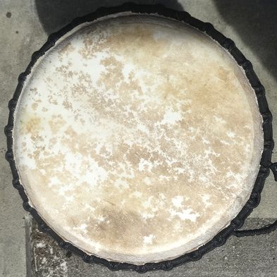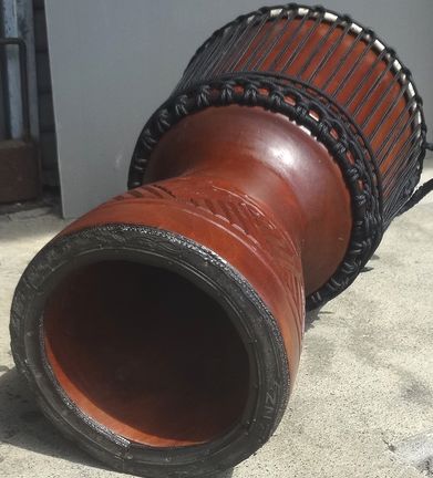 | 材 質 | 胴体:マホガニー、ヘッド:ヤギ皮(厚め)、鉄リング(2本)、ナイロンロープ、ラバーボトム。 |