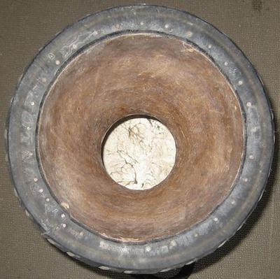 | 材 質 | 胴体:パンカブアヤ(ワニの木)、 ヘッド:牛皮(インドネシア/ジャワ産:極厚)、 鉄リング(上×2、下×1)、専用ナイロンロープ。 ボトム・ラバー、装飾(ブロンズ・鉄) |